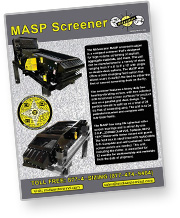 The MASP has long-life spherical roller screen bearings and is driven by one 5 H.P., 230/460 Dual Volt, 3-phase, 60 Hz TEFC Motor with motor mount and guard. The feed box is steel lined with replaceable A-R. Complete and self-contained. Less screen panels are needed.