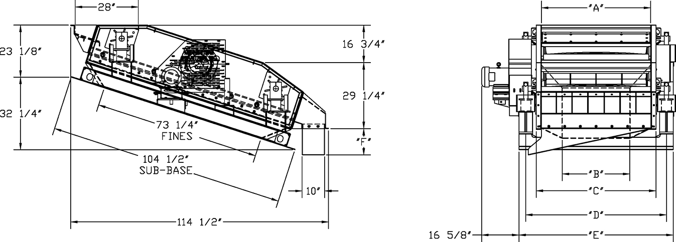 The MASP screener/scalper features a heavy duty two bearing vibrating screen, with two selected side-tensioned screen surfaces for product size on a parallel grid deck design. The particle stream is split up on a total of 24 sq. feet of screening area. The unit is to be pedestal mounted and complete with sub-base frame.